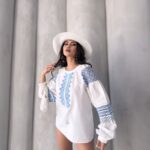 Mavi Nakışlı Bohem Beyaz Bluz – Zamansız Şıklığın İmza Parçası