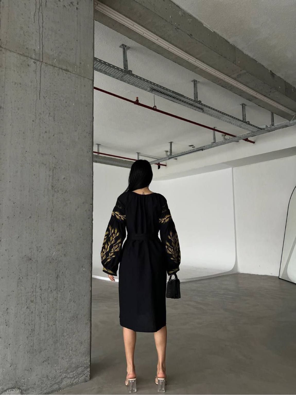 Otantik Nakış İşlemeli Balon Kol Kuşaklı Midi Boy Tasarım Elbise - Görsel 3