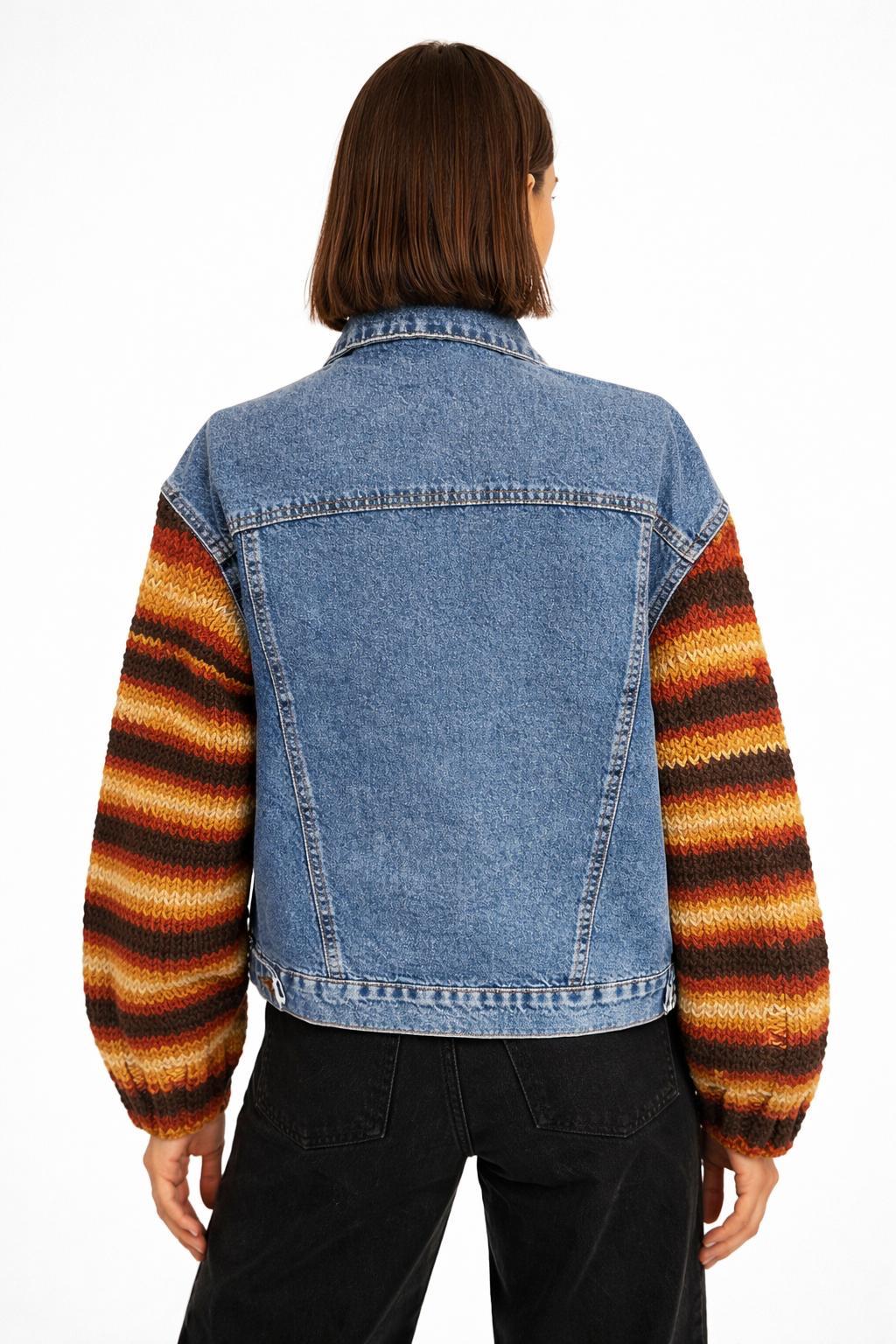 Mart 27, 2026Sunset Harmony: Gün Batımı Tonlarında Örgü Kollu Denim Ceket